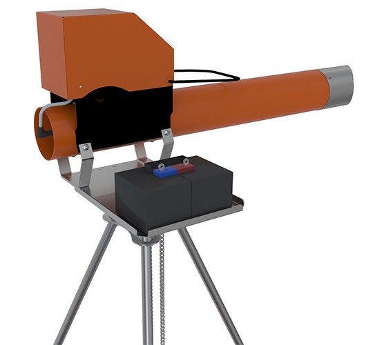 Стойка представляет собой устойчивую конструкцию с площадкой для крепления отпугивателя и тремя телескопическими ножками, высота которых регулируется для подстройки под тип поверхности. Площадка, на которой установлена гром-пушка, автоматически поворачивается при каждом выстреле на небольшой угол (15 - 30 градусов). Таким образом происходит вращение устройства вокруг своей оси на все 360°, что значительно увеличивает площадь действия отпугивателя.